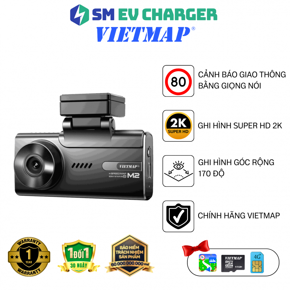 Trải nghiệm lái xe an toàn, thông minh cùng SpeedMap M2 camera hành trình hàng đầu của VIETMAP. Với cảm biến Sony Starvis 2, ghi hình siêu nét cả ngày lẫn đêm, cảnh báo giao thông đa dạng, kết nối 4G tiện lợi, VIETMAP SpeedMap M2 là người bạn đồng hành không thể thiếu của mọi tài xế. Bảo vệ bạn và gia đình trên mọi nẻo đường.